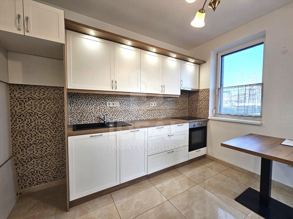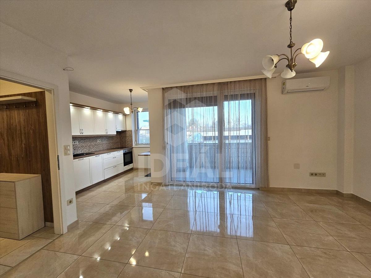 Győr, Sziget, Töltésszer utca, újszerű amerikai konyhás + 1 szobás, 51 nm -es, első emeleti téglalakás, erkéllyel (8 m2) hosszú távra, albérletbe kiadó. (Lift van)