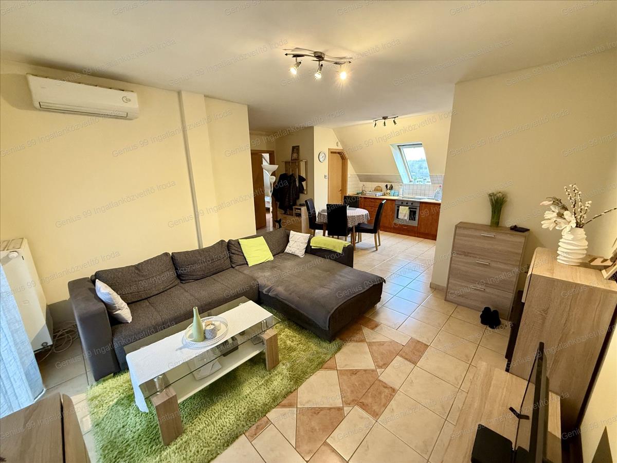 A lakásban cirkó gázfűtés gondoskodik a kellemes hőmérsékletről a hidegebb hónapokban, míg a klíma a nyári melegben biztosítja a komfortot. a műanyag nyílászárók és a Velux tetőtéri ablakok sötétítő rolóval felszereltek, így a lakás mindig kellemesen világos, de igény szerint árnyékolható.