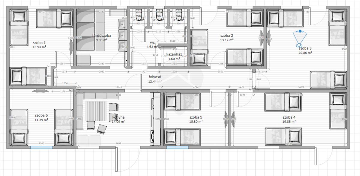 Jelenleg, minden szobában 2 ágy van, az alaprajztól eltérően.