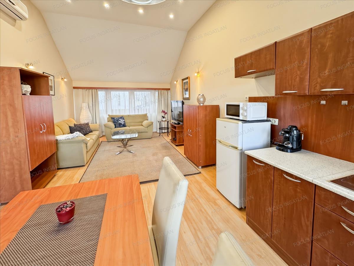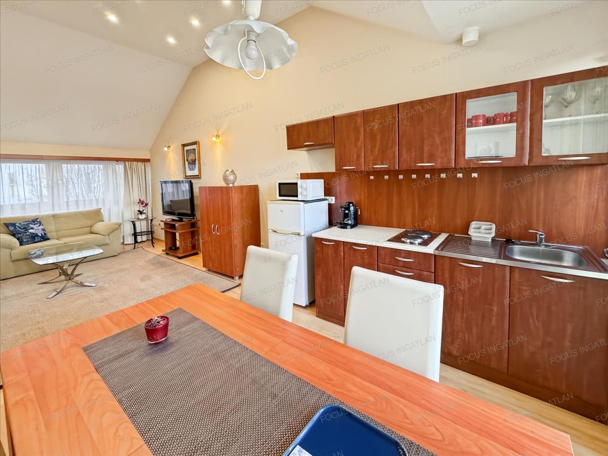 Kiadó a focus ingatlan kínálatából, Kecskemét Belvárosában, a Malom center közelében, fiatal építésű, magas minőségben megépített apartmanházban, nappali + 1 szobás, nagy teraszos, bútorozott lakás.