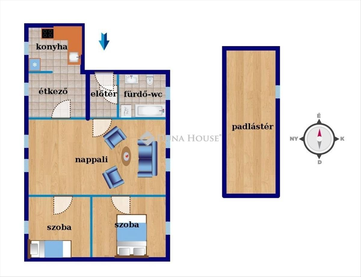 - nettó 45, 44 nm , bruttó 62 nm (+ padlástér 16 nm )