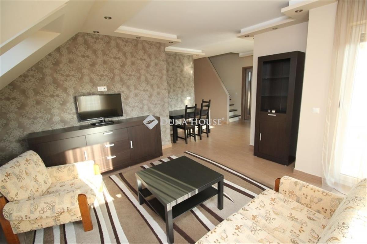 Kiadó Kecskemét egyik exkluzív lakóparkjában, egy 12 lakásos társasház 2. emeletén található, nettó 65 m²-es (bruttó 76 m²-es), belső kétszintes, 2 + 1 szobás, dupla komfortos lakás. Az ingatlan amerikai konyhás kialakítású, és két erkéllyel is rendelkezik.