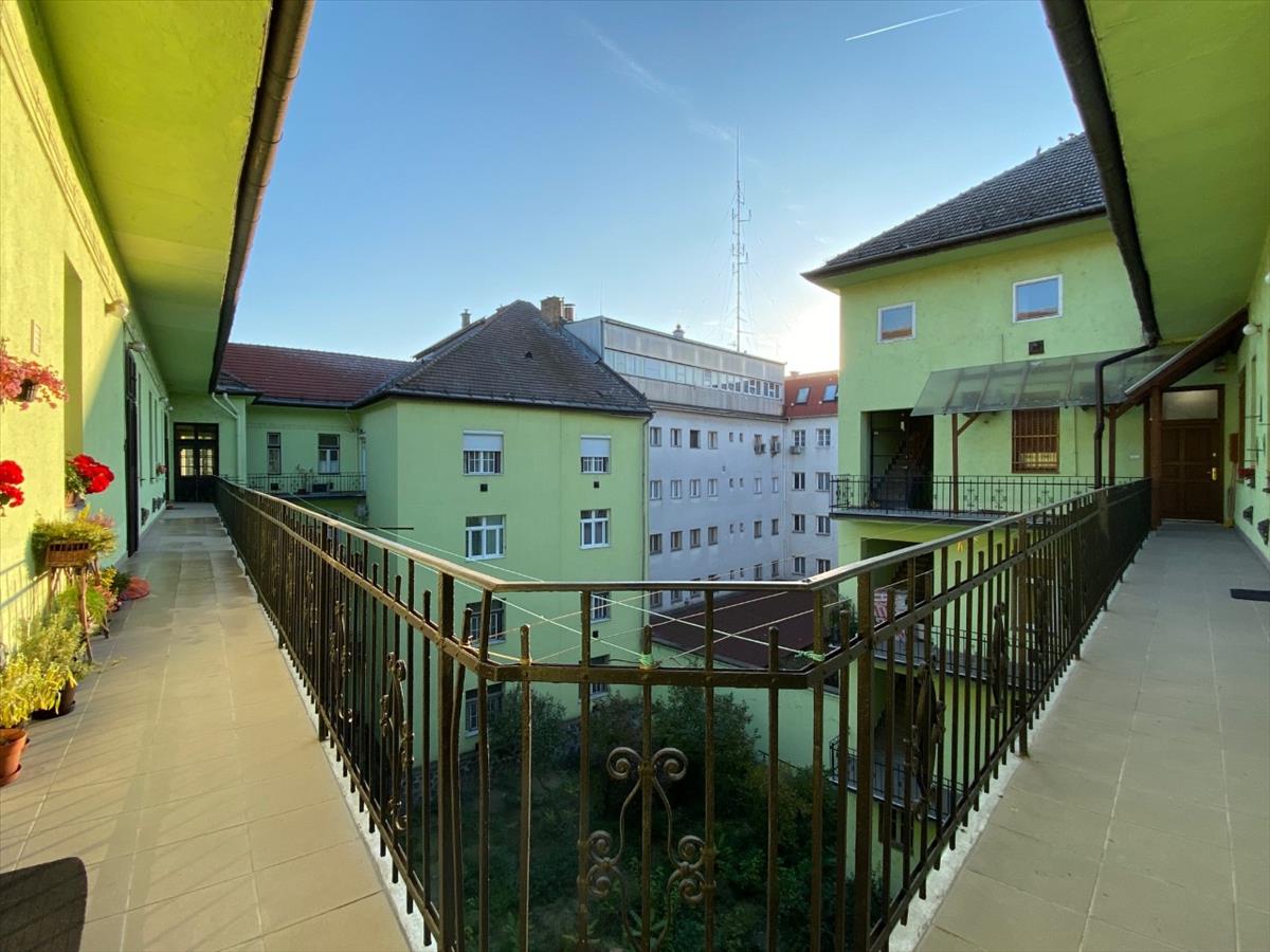 A lakás különlegessége a körfolyosó elkerített része, amely hangulatos erkélyként használható, valamint a belső udvarra és utcára néző tájolás, amely kellemes térérzetet biztosít.