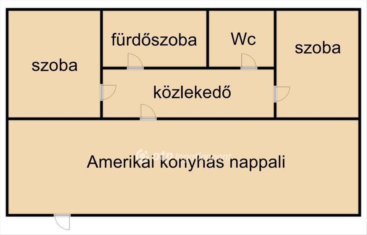 Elrendezés: 2 külön nyíló szoba + tágas amerikai konyhás nappali