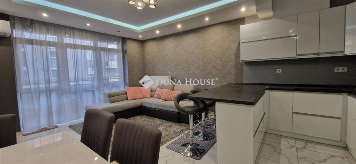 A fiatalosan, igényesen kialakított otthon jellemzői:*nappali, *étkező+konyha, *fürdőszoba, *külön wc, *2 szoba, *loggia, *beépített gépesített konyha*szigetelt tégla falazat*lift*klima*közös tároló*K-Ny-i tájolás*gázcirkós fűtés*nagyon alacsony rezsi*parkolás a ház előtt vagy a teremgarázsban vásárolható beállóbanKisállat nem hozható a lakásba.