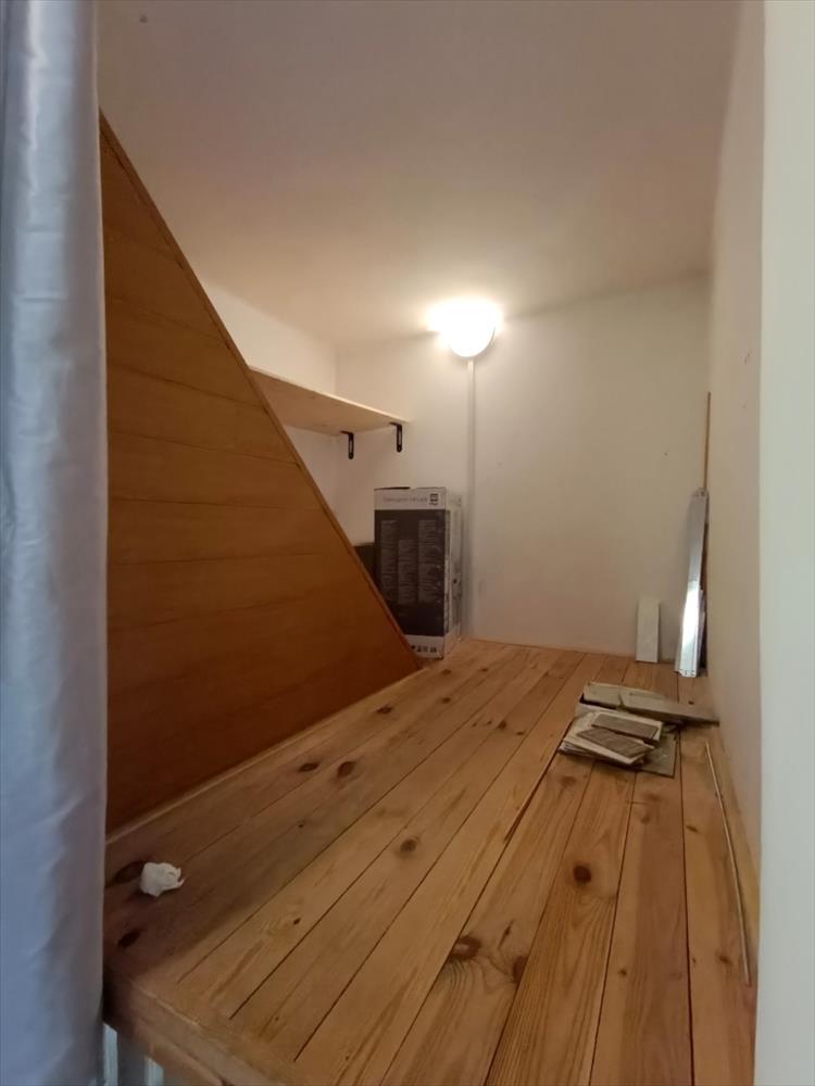 Elrendezés: 1. emeleti bejárat, két szinten elosztva (lent: nappali-étkező-konyha, spájz, wc, erkély; fent: 2 hálószoba, zuhanyzós fürdő+WC). Zárt belső udvarral rendelkező társasház