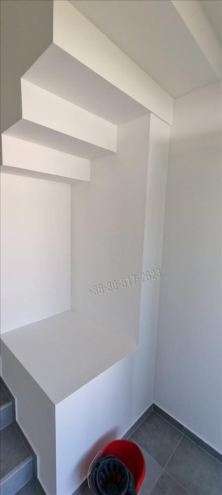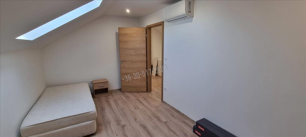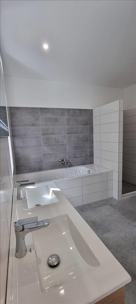 A földszinti lakástól külön bejárattal elválaszott első emelet+tetőtéri lakásban található összesen hat szoba, konyha-étkező egy tágas légtérben, kettő fürdőszoba+wc, valamint külön is helyet kapott még kettő wc.