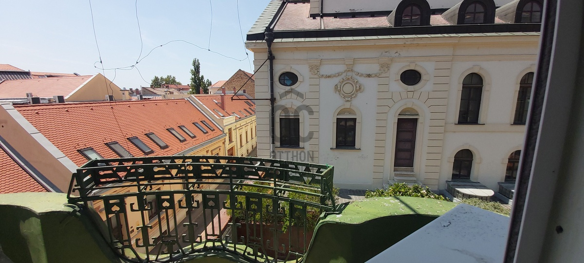 - 40m2-es nappali, igényes bőr üllőgarnitúrával, erkéllyel. . Kilátással a színházra