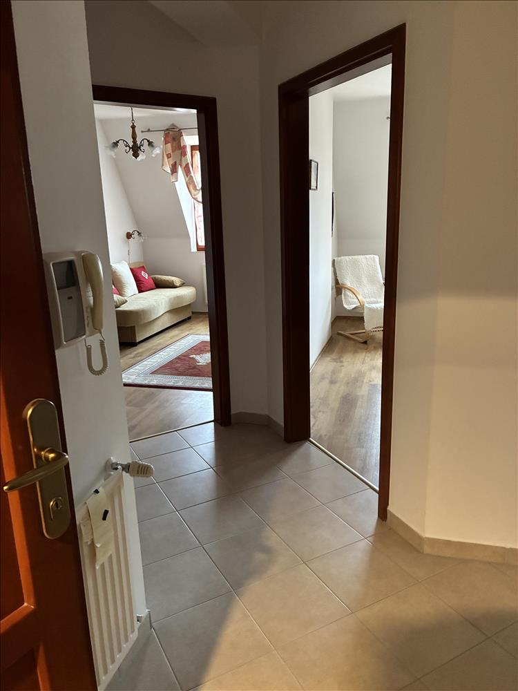 A lakásba belépve nagy előszoba, innen nyílik 2 szoba, a konyha-nappali egyben, az étkező rész elkülönítve. a lakáshoz külön wc és külön fürdőszoba is tartozik. a lakás részben bútorozott! a lakáshoz tartozik egy hatalmas 11m2-es terasz!