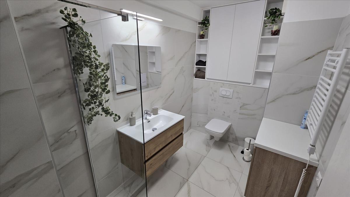-Nappali + konyha + étkező, 2 hálószoba, fürdőszoba + wc, külön wc mosdóval,
