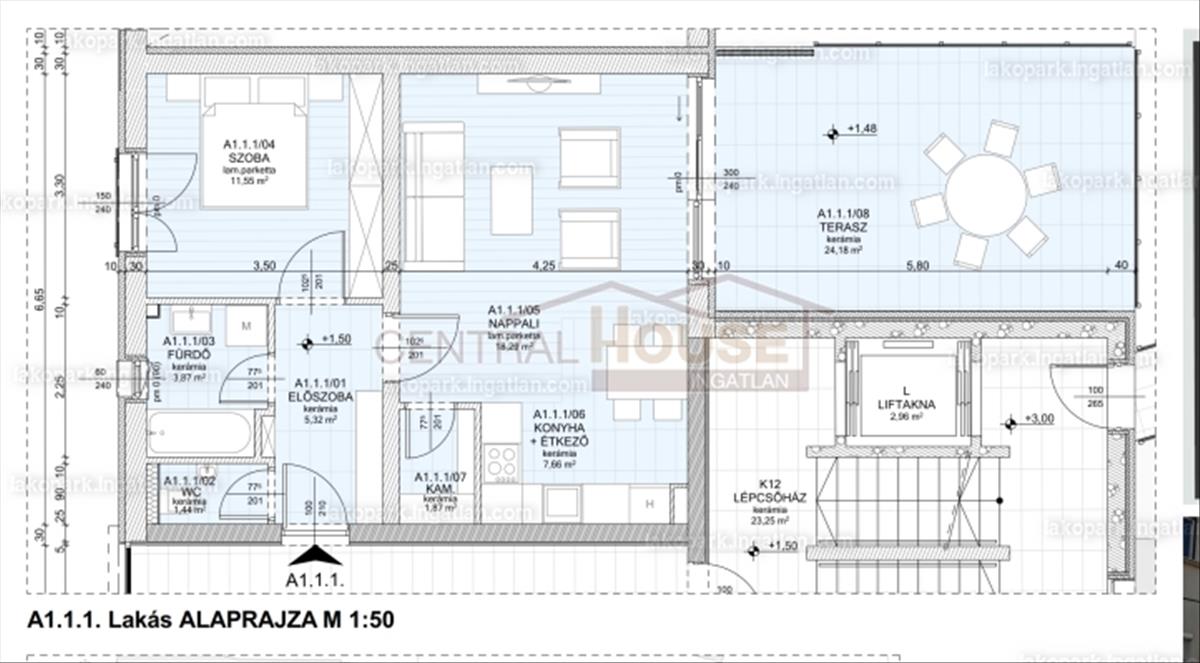 - 50 m2 alapterület nappali-konyha + 1 háló