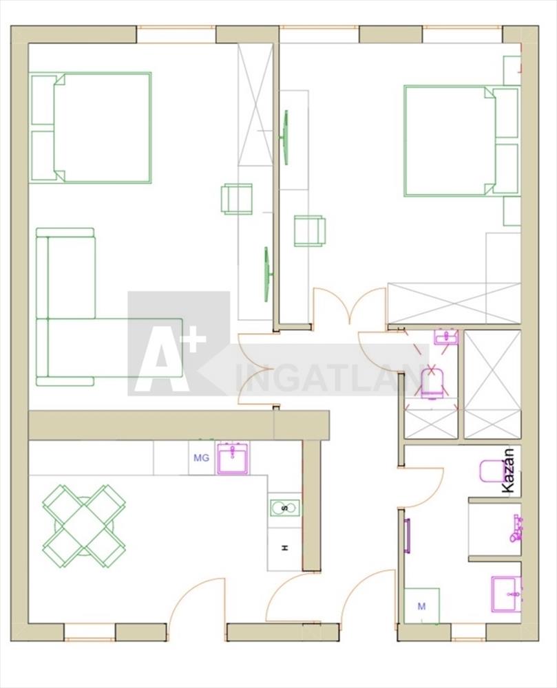 A lakás kialakítása : 2 szoba 1 konyha, 1 fürdőszoba-wc-vel és + 1 külön wc.