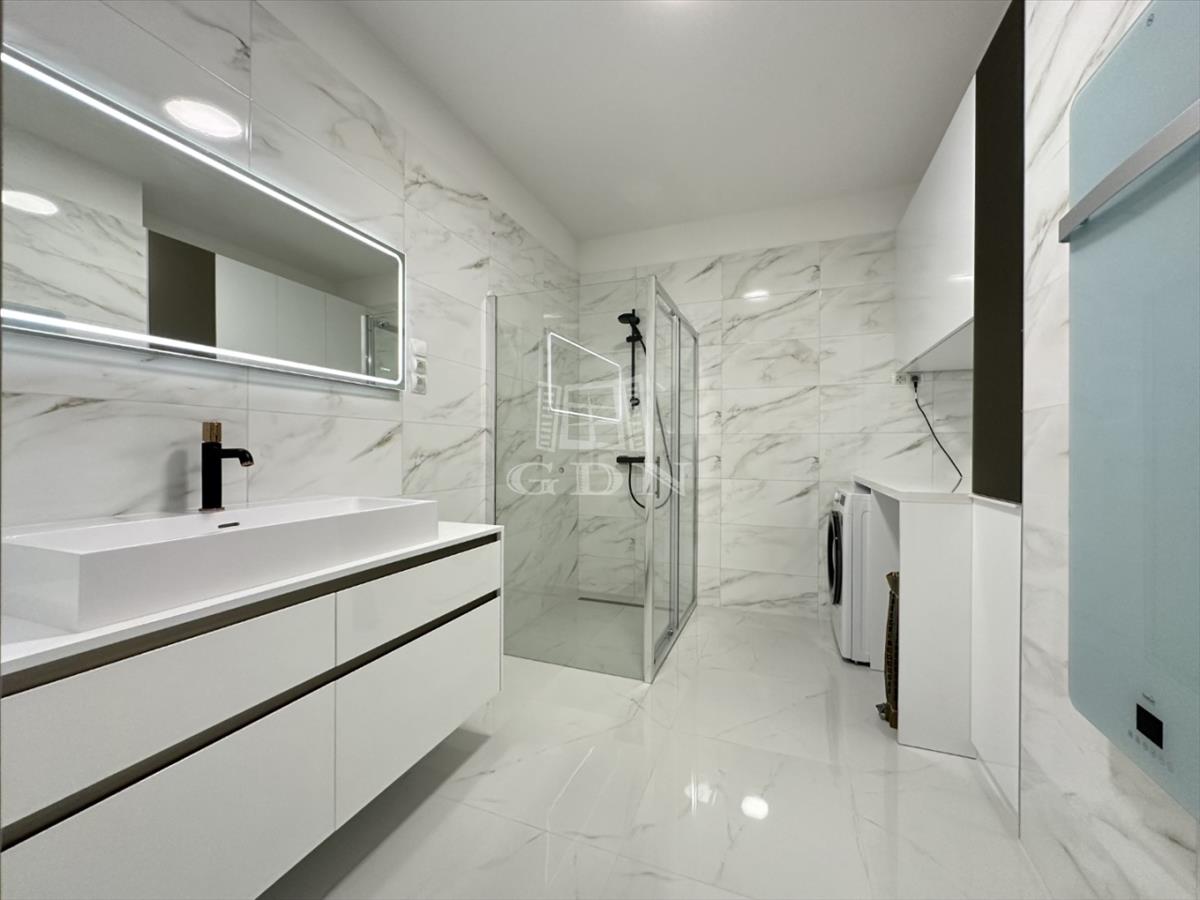 A lakásban a hideg és a meleg burkolatok prémium kategóriából lettek választva a hosszútávú időtállóság érdekében.