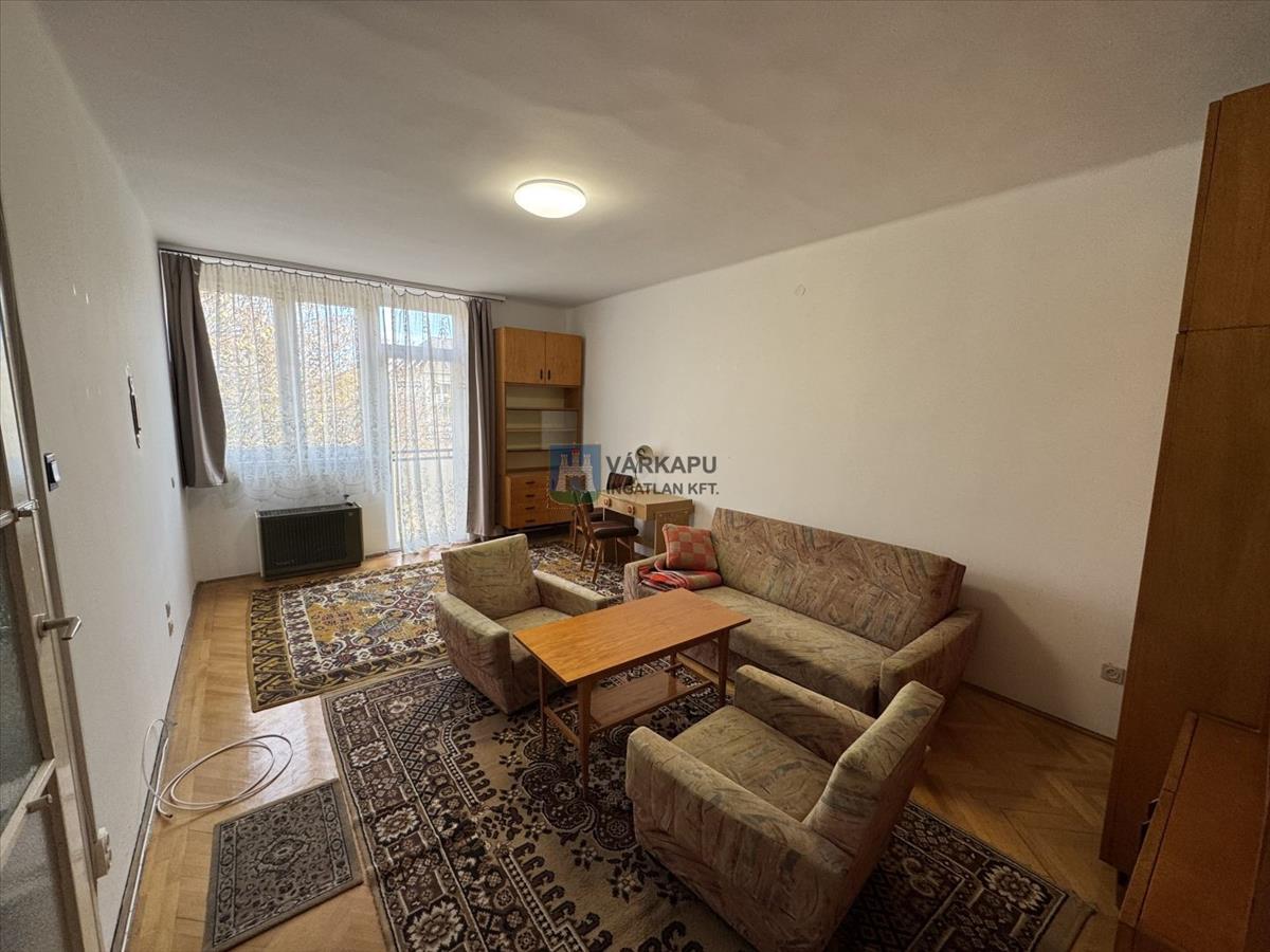 A 3. emeleti, franciaerkélyes lakás, gáz konvektor fűtésű, műanyagablakos. a képen látható bútorokkal felszerelt, de üresen is kiadó.