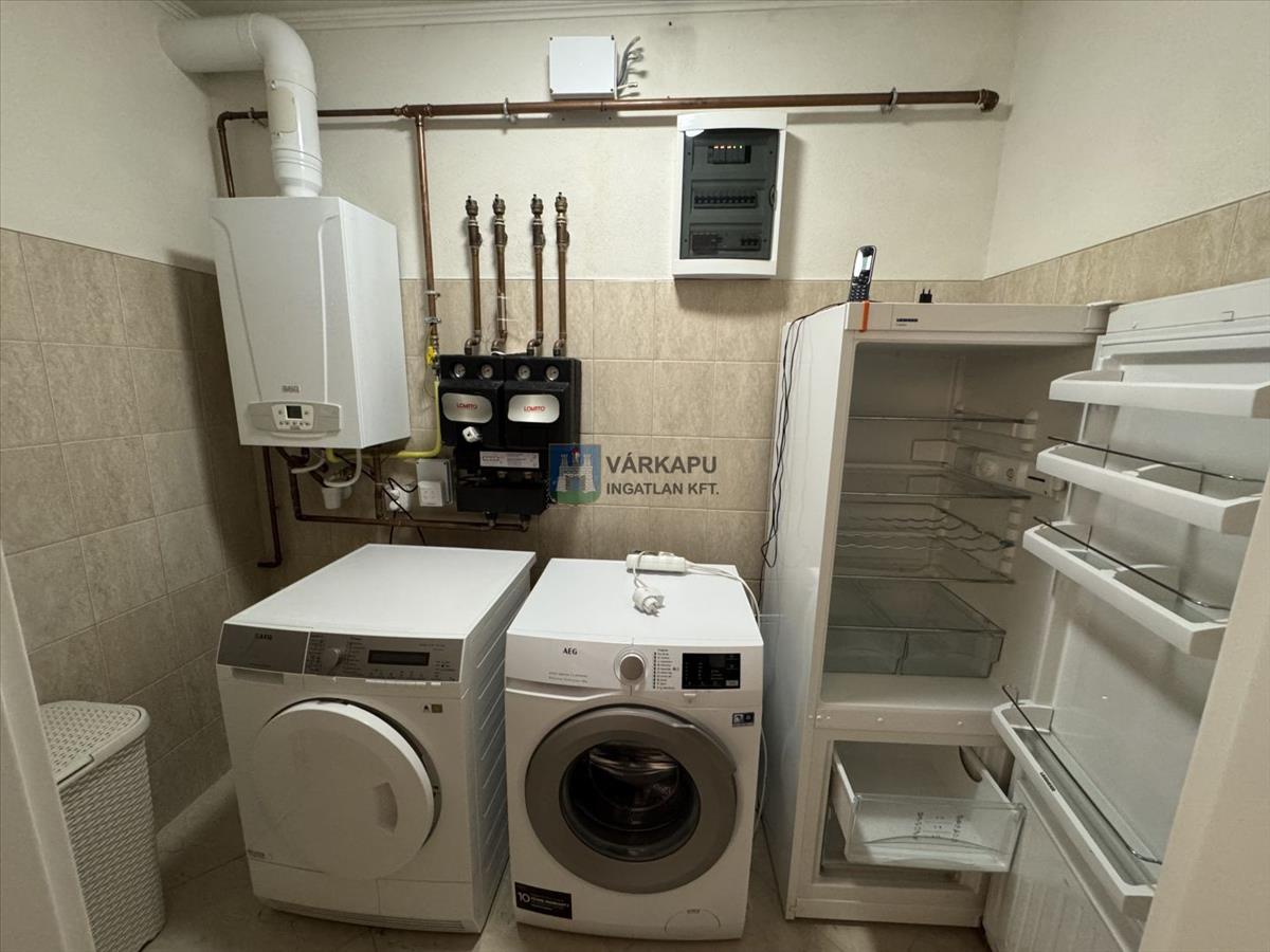 A földszinti téglalakás, szigetelt, műanyag ablakos az épület. Fűtése gáz kazánról megoldott, hőleadása padló és radiátor. Teljesen berendezett és gépesített, légkondicionált.