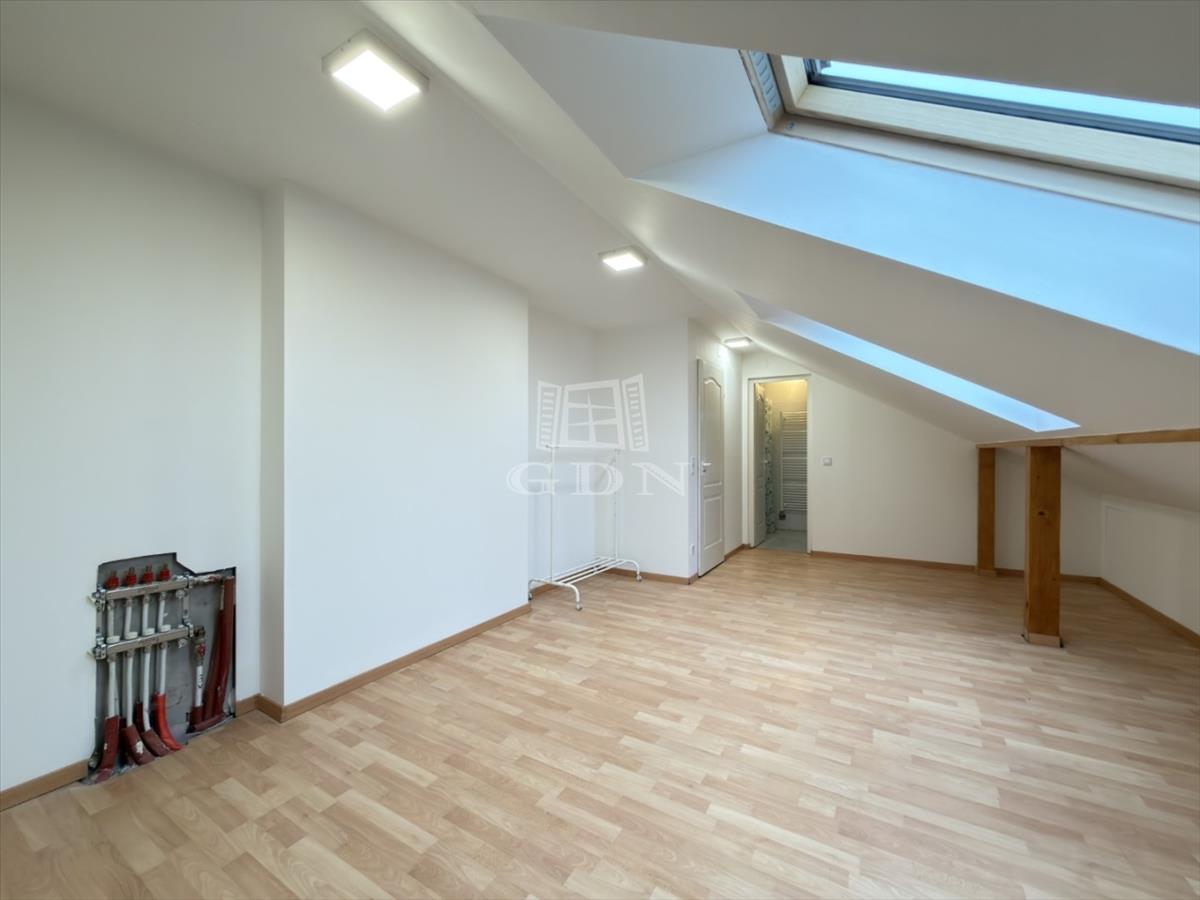A lakás bútor nélküli, de a konyhabútor és elektromos tűzhely beépített. a szobák laminált padlósok, többi helyiség járólappal és oldalfali csempével burkolt. Gáz központi fűtéses (falfűtés), emeleten padló fűtés, a műanyag nyílászárókon szúnyogháló és redőny felszerelve. Zárt udvarban a parkolás 10. 000 Ft/hó költségen igényelhető. Közös költség 15. 000 Ft / hó.