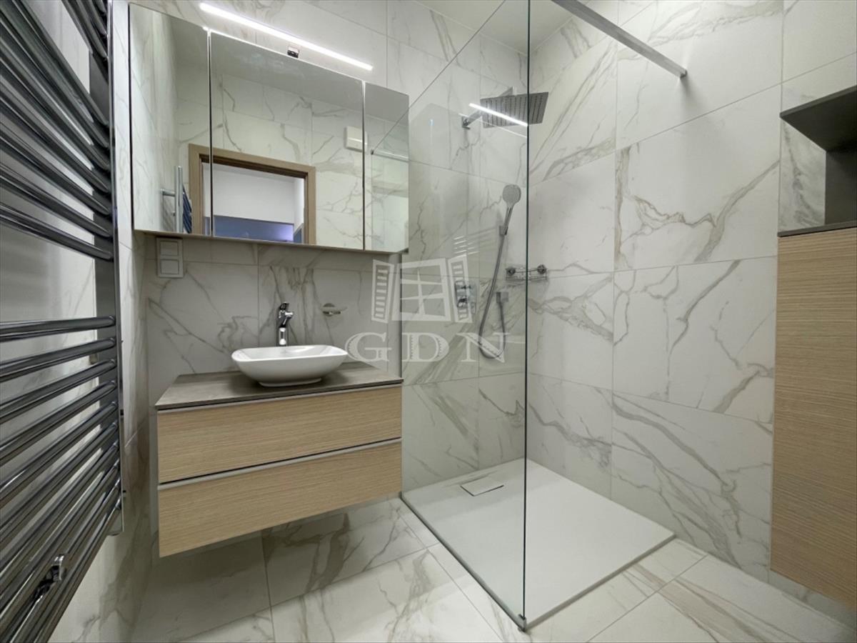 Bl-003375. Belvárosban, modern akadálymentes, 2 lifttel ellátott társasházban 50 nm nagyságú, 6 nm -es erkéllyel rendelkező, amerikai konyhás nappali + 2 fél szoba elosztású lakás gépesítve, részben vagy egészben bútorozva (igény szerint), (jelenleg a képeken látható berendezési tárgyak találhatók meg), smart home rendszerrel szerelve, valamint az épület alatt található teremgarázsban 1 autó számára biztosított beálló hellyel együtt hosszútávra kiadó.