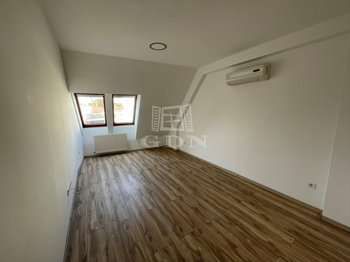 Bl-002582. Belvárosban, társasházban 3. emeleti /tetőtér/, 57m²-es, amerikai konyhás nappali + 1 szoba elosztású, klimatizált, tégla, teljes körűen felújított, távfűtésű, üres lakás hosszútávra kiadó. a melegvíz előállítása Ariston Smart 100 literes villanybojlerrel megoldott. Az épület lifttel ellátott, a lakáshoz csak egy emeletet kell gyalogolni. Közös költség 15. 612 Ft/hó. a lakásban kistestű háziállat tartása lehetséges, de a dohányzás nem megengedett. a lakásban új konyhabútor található hűtővel (igény szerint saját is hozható) és villanytűzhellyel, mikrohullámú sütő és mosógép nincsen. Parkolni a ház előtt, mögött 8-18 között fizetősen, a többi időszakban ingyenesen lehet. Az épületben portaszolgálat működik. a lakás kialakításából és jellegéből fakadóan 1-2 ember számára biztosít kényelmes lakhatást.