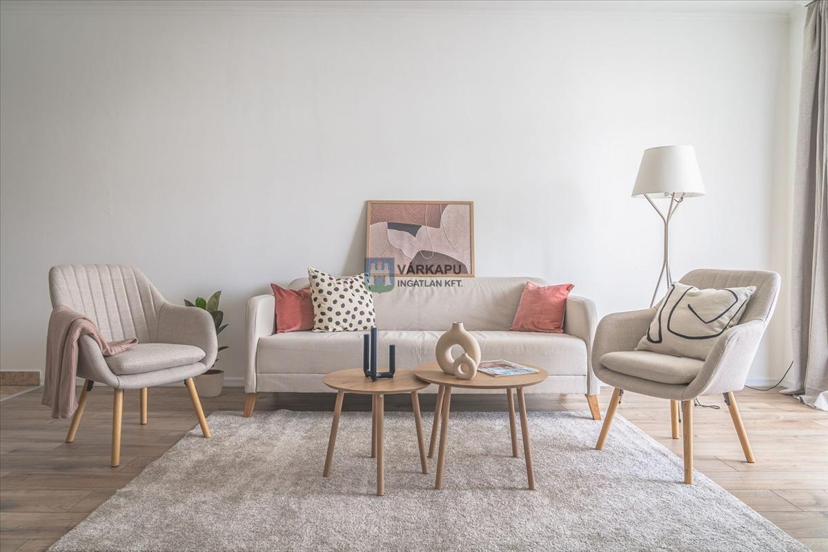 A bútorok, szaniterek, csapok szintén újak, valamint a felújítás során minőségi meleg burkolat került a nappaliba. a lakásban klíma is kiépítésre került.