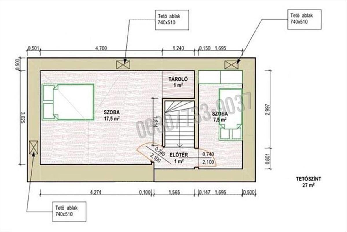 • Tetőtérben két szoba