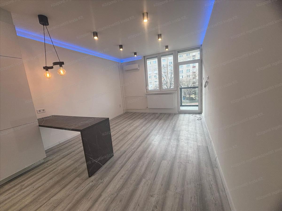 A lakás egy négyemeletes társasház 2. emeletén található, teljeskörűen, igényesen felújított, modern, jó elrendezésű. Helyet kapott benne 2 szoba, amerikaikonyhás nappali, közlekedő, fürdőszoba WC-vel, erkély. a szobák laminált padlóval, a többi helyiség járólappal burkolt.