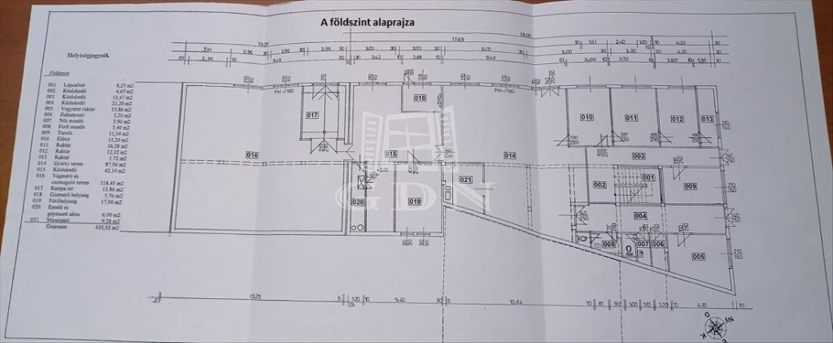 A földszint hasznos alapterülete 430 nm, kiválóan alkalmas gyártásra, raktározásra, az udvarral rámpa tér köti össze.