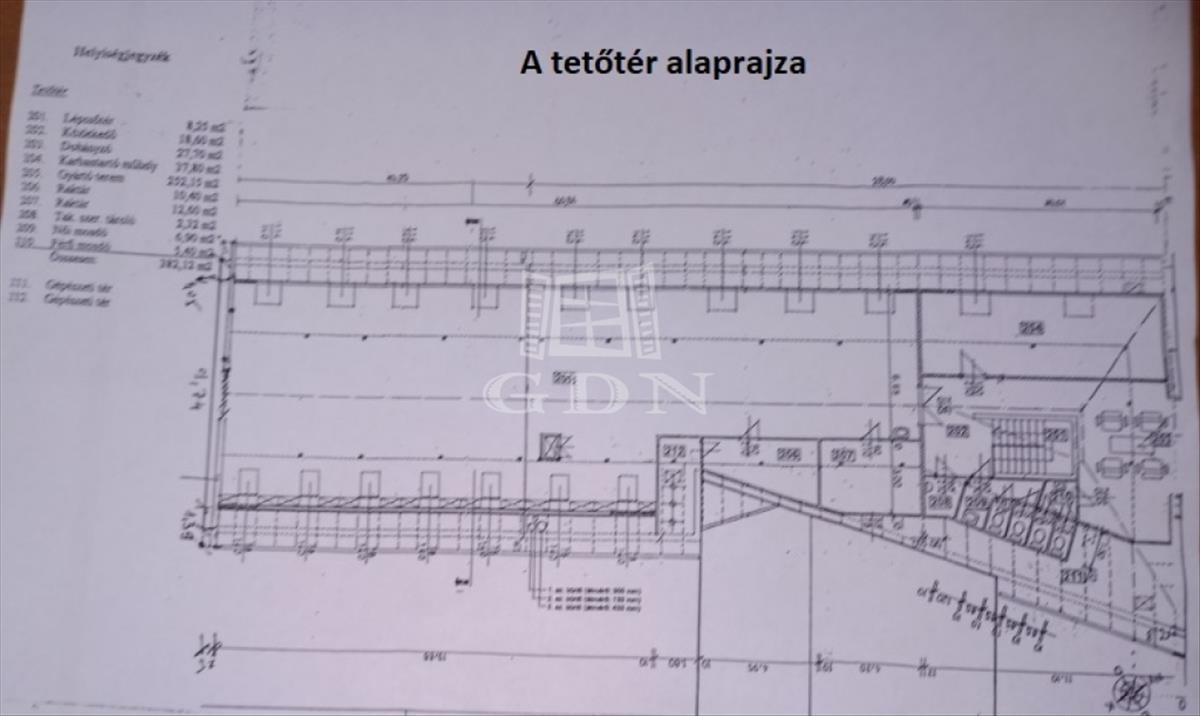 A tetőtér hasznos alapterülete 382 nm, gyártó tér, karbantartó műhely, női és férfi mellékhelyiségek találhatók benne.