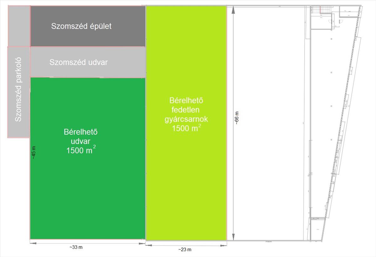 A terület sokoldalúan hasznosítható, legyen szó járműtárolásról, kereskedelmi tevékenységről vagy logisztikai bázisról. a külön vagy egyben történő bérlés lehetősége maximális rugalmasságot biztosít.