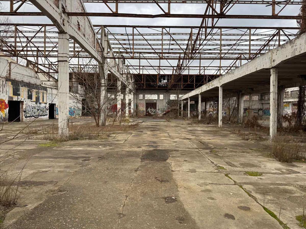 Egykori gyárcsarnok falai között – tető nélkül, így kiválóan alkalmas tárolásra, járművek elhelyezésére, üzemi területnek.