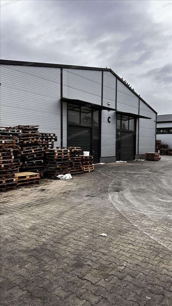 650 m²-es csarnok: Tartalmaz egy cca: 60 m²-en fűthető irodahelyiséget szociális blokkokkal, fűtés hűtő/fűtő klímával biztosítva. a csarnok nagy teherbírású ipari padlóval rendelkezik, és ipari kamerával és éjszakai világítással felszerelt. a csarnok belmagassága 5-6 m, a maximális tárolási magasság közel 5 m.