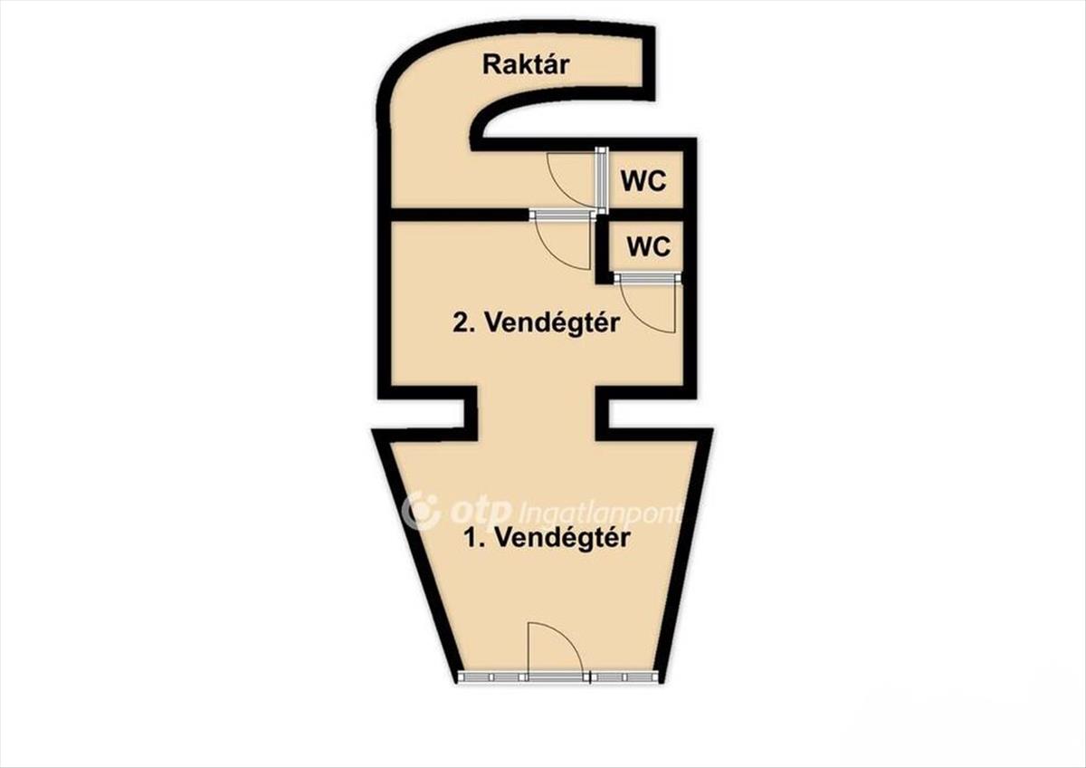 Belépve két tágas tér fogad, amelyek ideálisak vendégtér és kiszolgáló pult kialakítására, majd az üzlet hátsó részében vendég és személyzeti mosdó, valamint egy külön raktárhelyiség is rendelkezésre áll.