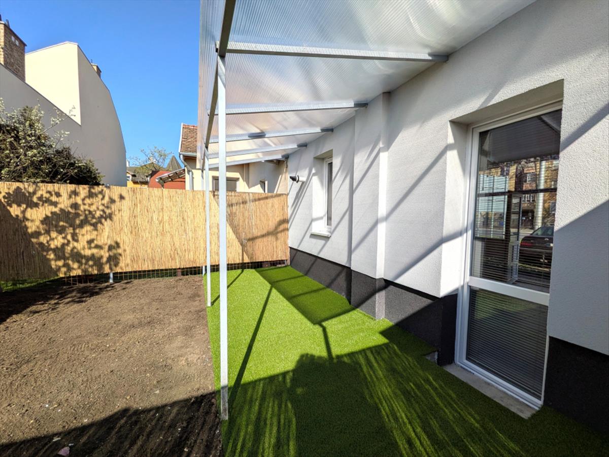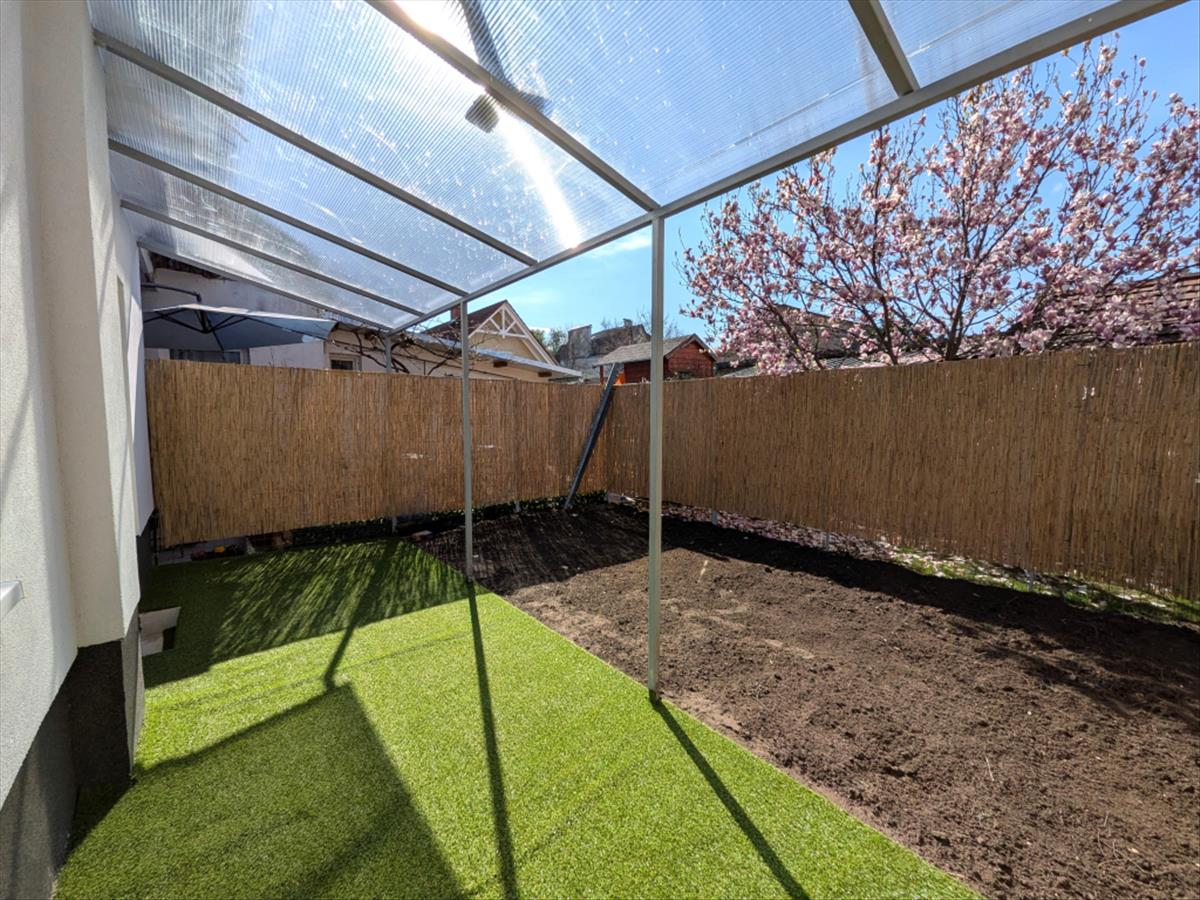 - 10 négyzetméteres, fedett terasz, 15 négyzetméteres kiskert