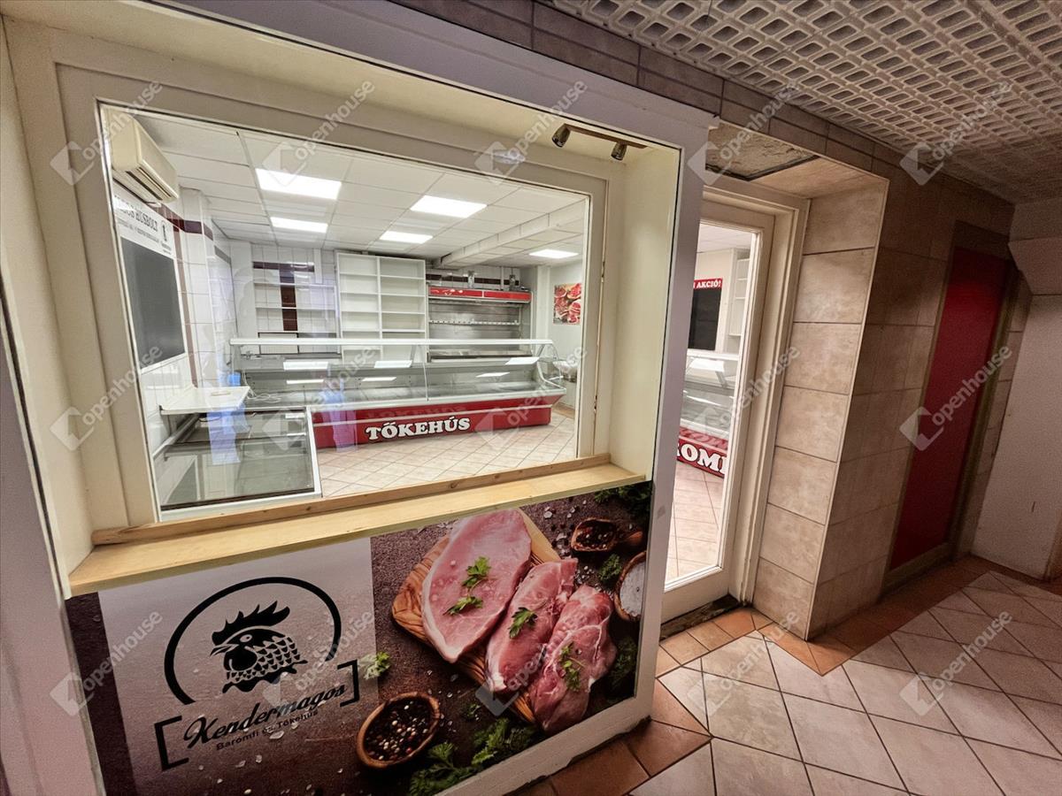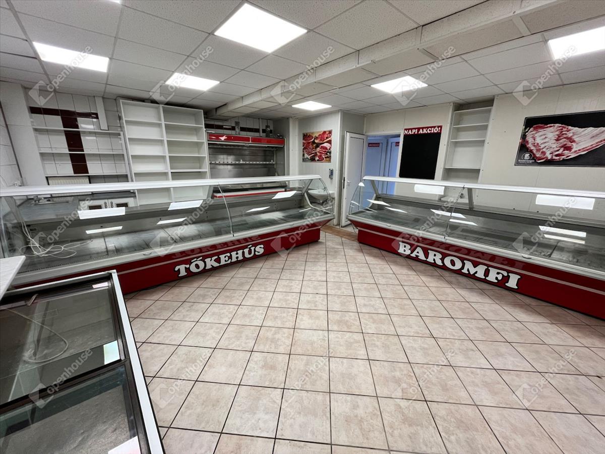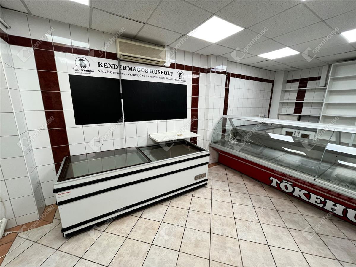 Miskolc belvárosában található, kiadó 66 m2 alapterületű, utcai bejáratos üzlethelyiség teljes húsbolti berendezéssel!