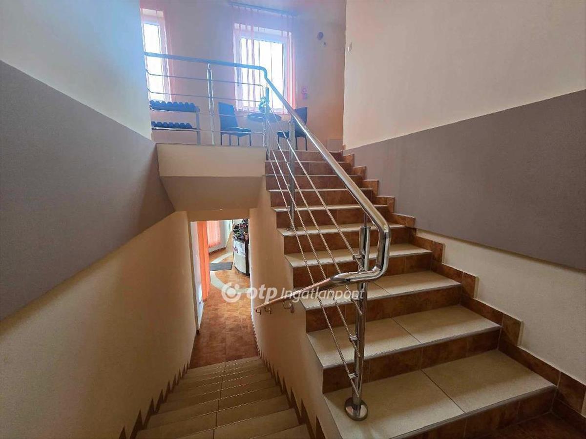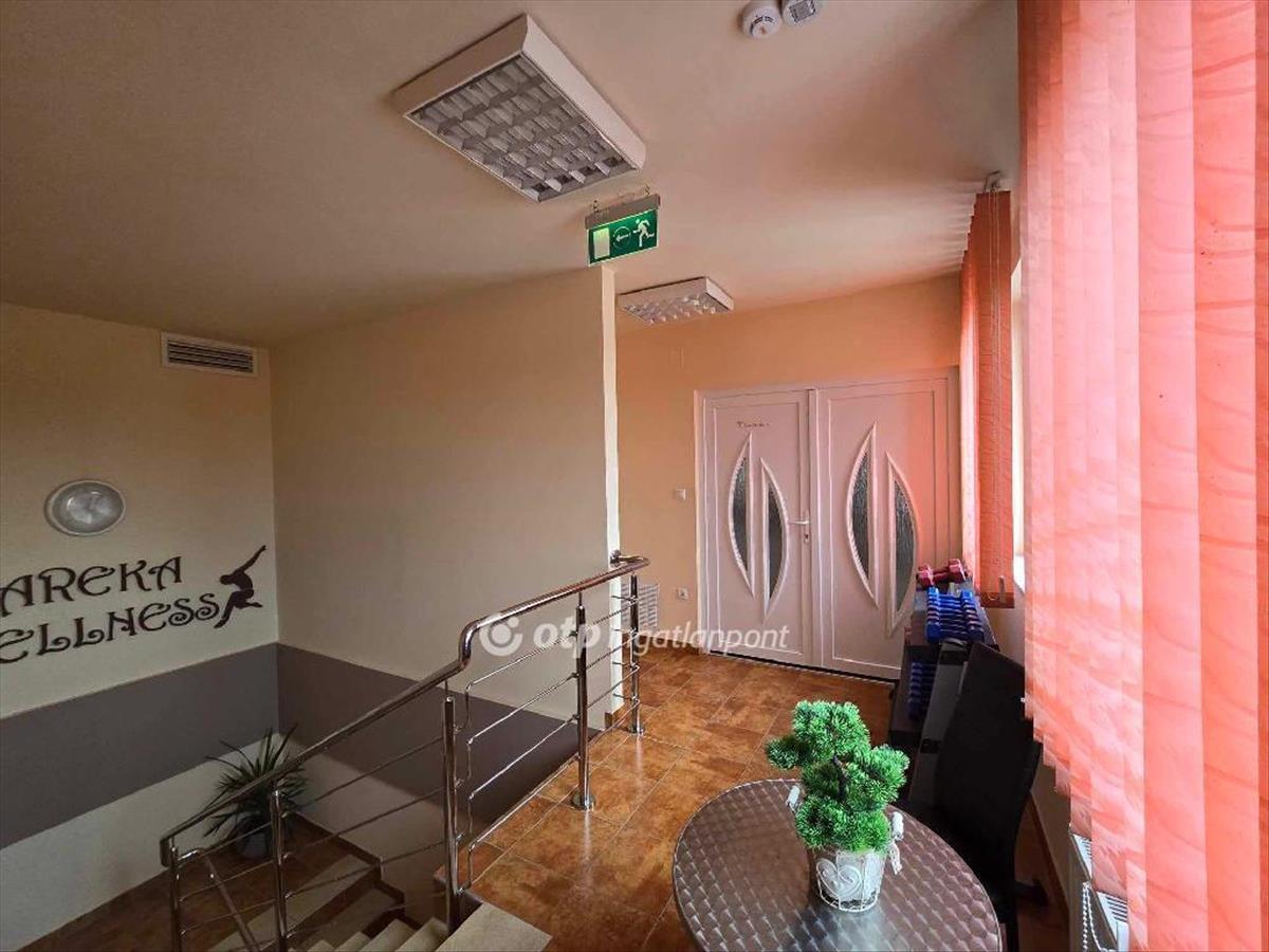 -A Kávézóhoz 280m2 terület tartozik a földszinten : sóbarlang, szolárium, 2 db irodai helyiség amely szolgáltatás kialakítására is alkalmas, illetve az emeleti rész ahol masszázsszoba, továbbá 2 db iroda, csoportos tornaterem (80m2 -es ) került kialakításra, ez a tér alkalmas lehet vendéglátó, szórakoztató rendezvények lebonyolítására is.