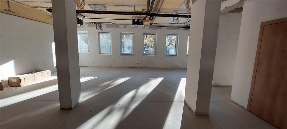 Kiadó egy 108 m²-es, modern üzlethelyiség, amely 96 m² főhelyiségből és a hozzá tartozó 12 m²-es mosdóból és takarítószer-raktárból áll.