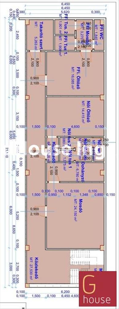 128 m² galérián kialakított szociális blokk (konyhával, öltözőkkel, mosdókkal, zuhanyzókkal)