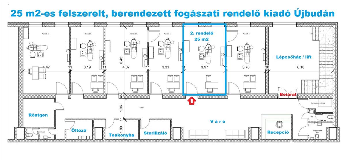 25 m2-es, felszerelt, berendezett fogászati rendelő kiadó ÚJBUDÁN-----