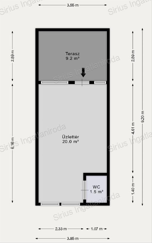 Az üzlet előtti rész díjmentesen használható, akár kialakítható egy 9 nm nagyságú terasz rész is.