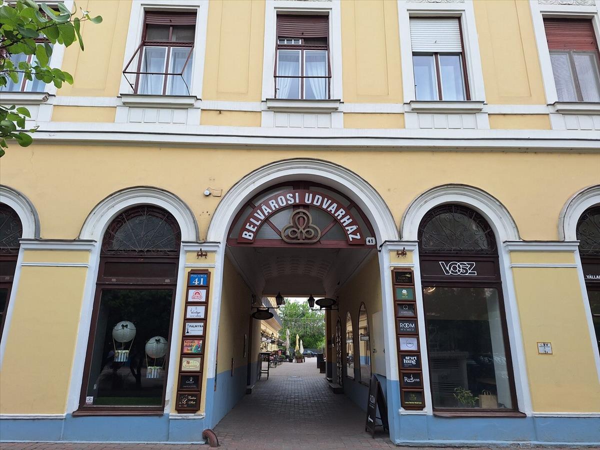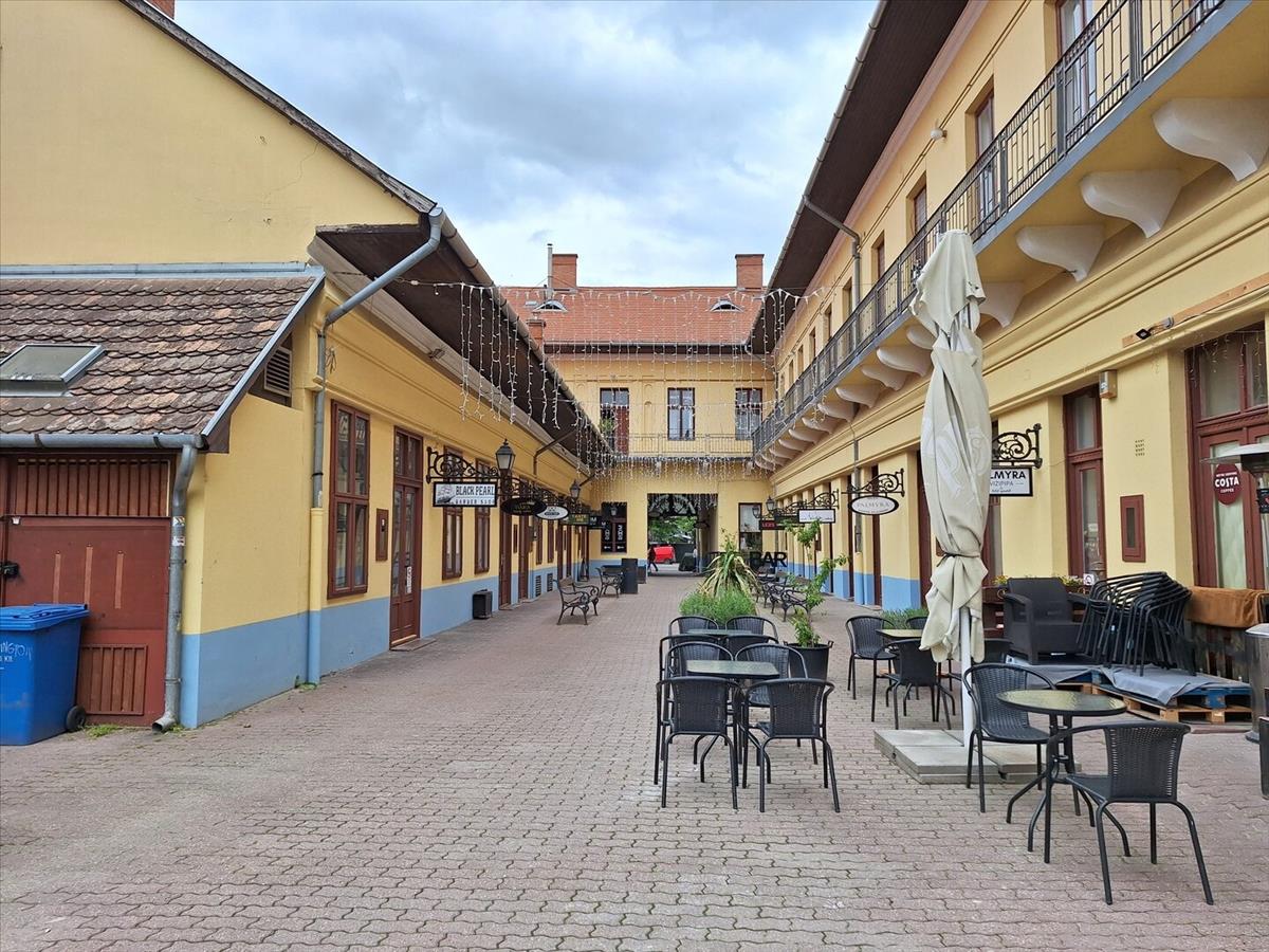 A gépkocsival érkezők nemcsak a Piac utcán, hanem az Arany János utcai parkolóban is megállhatnak. a bérlemény adottságai közül kiemelendő még, hogy a két egybenyitott, felújított udvarban számos üzlet található, ami további forgalmat generál.
