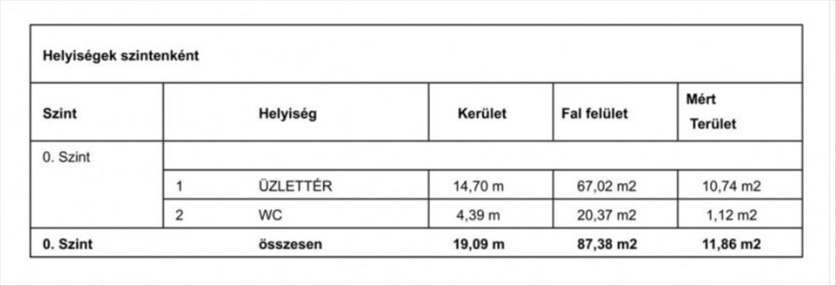 Az üzletben üzlettér és egy wc (+ kézimosó) helyiség található.