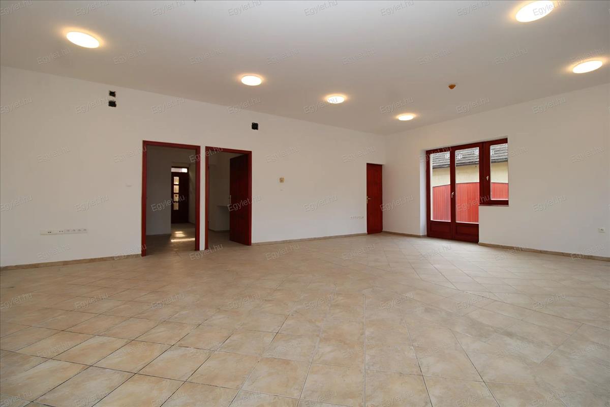 A bemutató teremből két ajtó is nyílik a közlekedő és a hátsó bejárat irányába, így az - igény szerint - akár ketté is osztható.