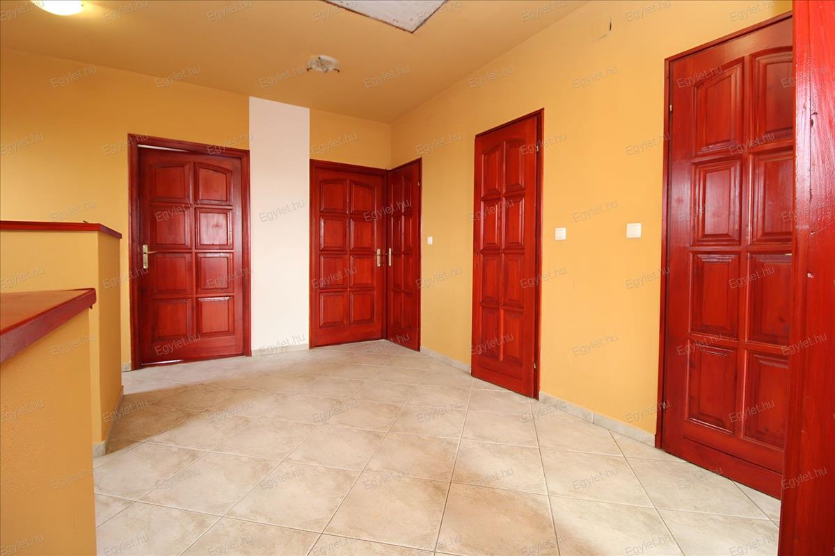 Zárt lépcsőház vezet fel az emeletre, ahol az előtérből nyílik az összes helyiség.
