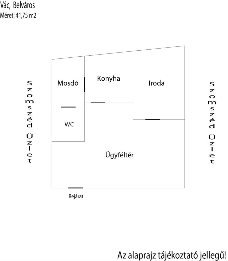 Az ingatlan 41, 75 m2-es, klimatizált, saját kis konyhával és szociális helyiséggel, külön mérőórákkal.