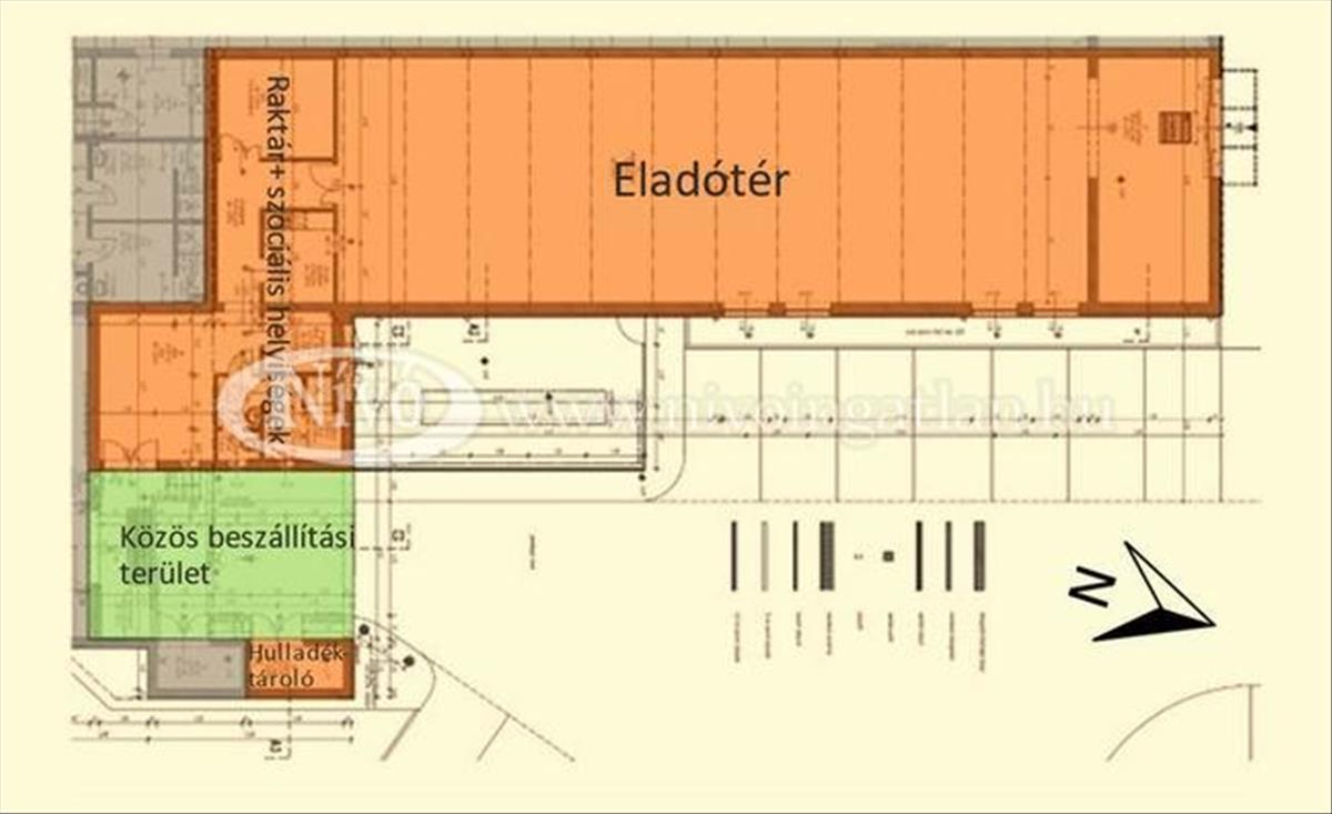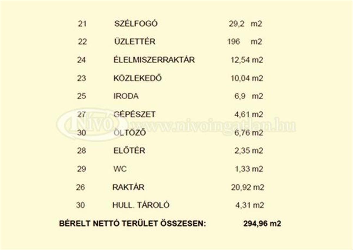 Az ingatlan nettó alapterülete összesen: 294, 96 m2, ebből az üvegportállal ellátott eladó tér 196 m2-es. Tartozik hozzá raktárak, iroda, öltöző, szociális blokk és teakonyha is.