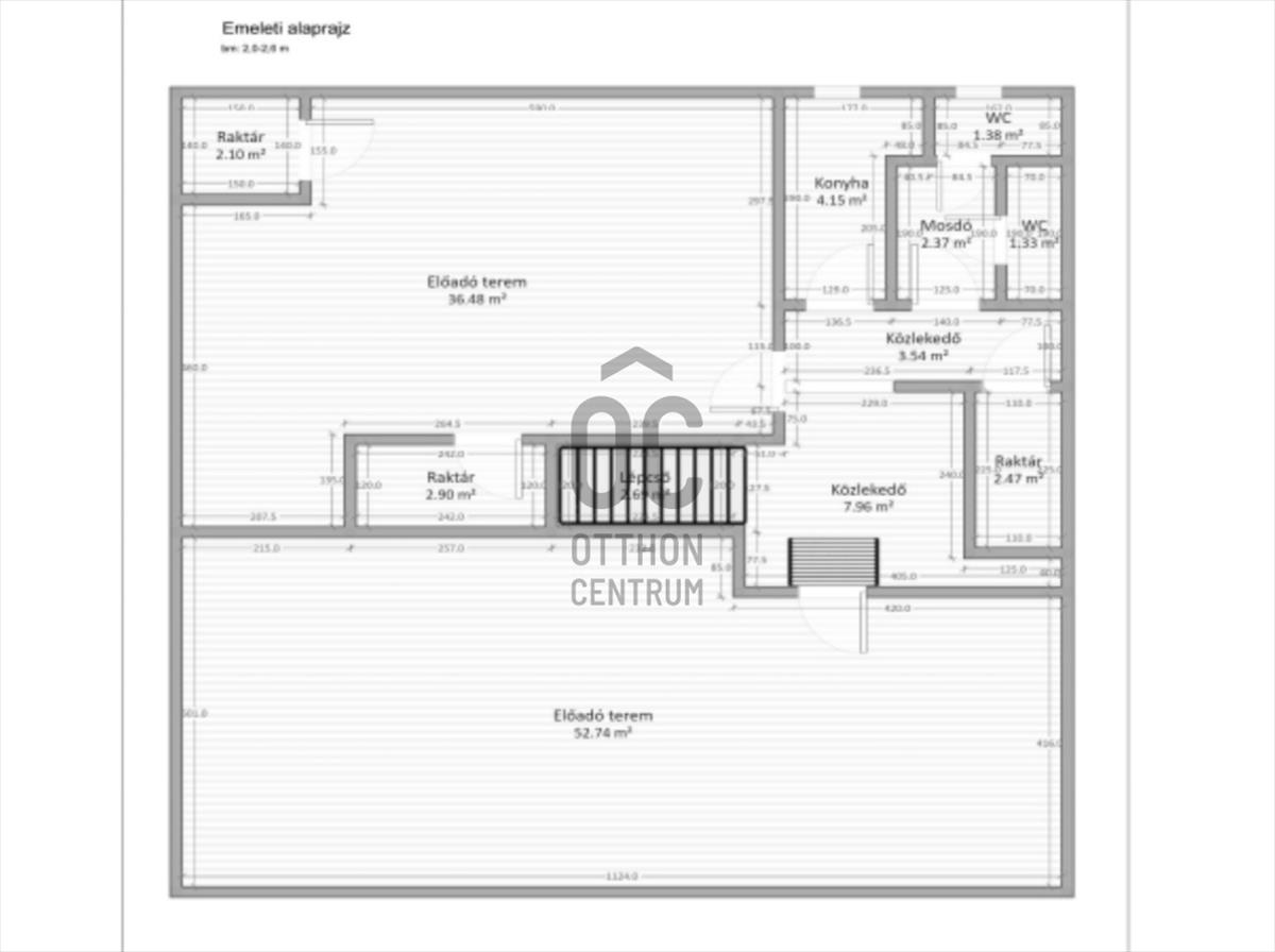 – 2 nagy előadó / open space tér + konyha, mosdók, raktár beosztás