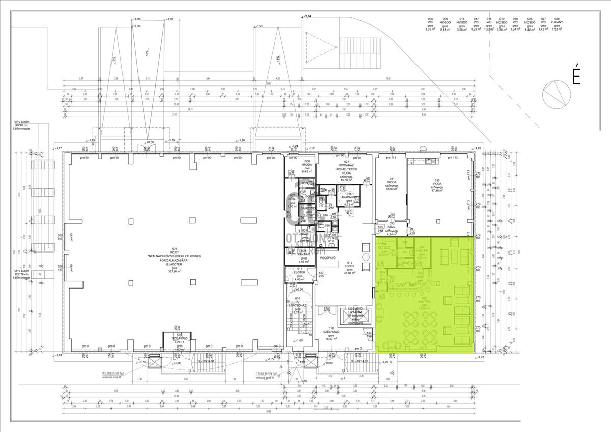 - 98, 5 nm - vendég tér, bár, öltöző. Zuhanyző, wc helyiség, raktár beosztású