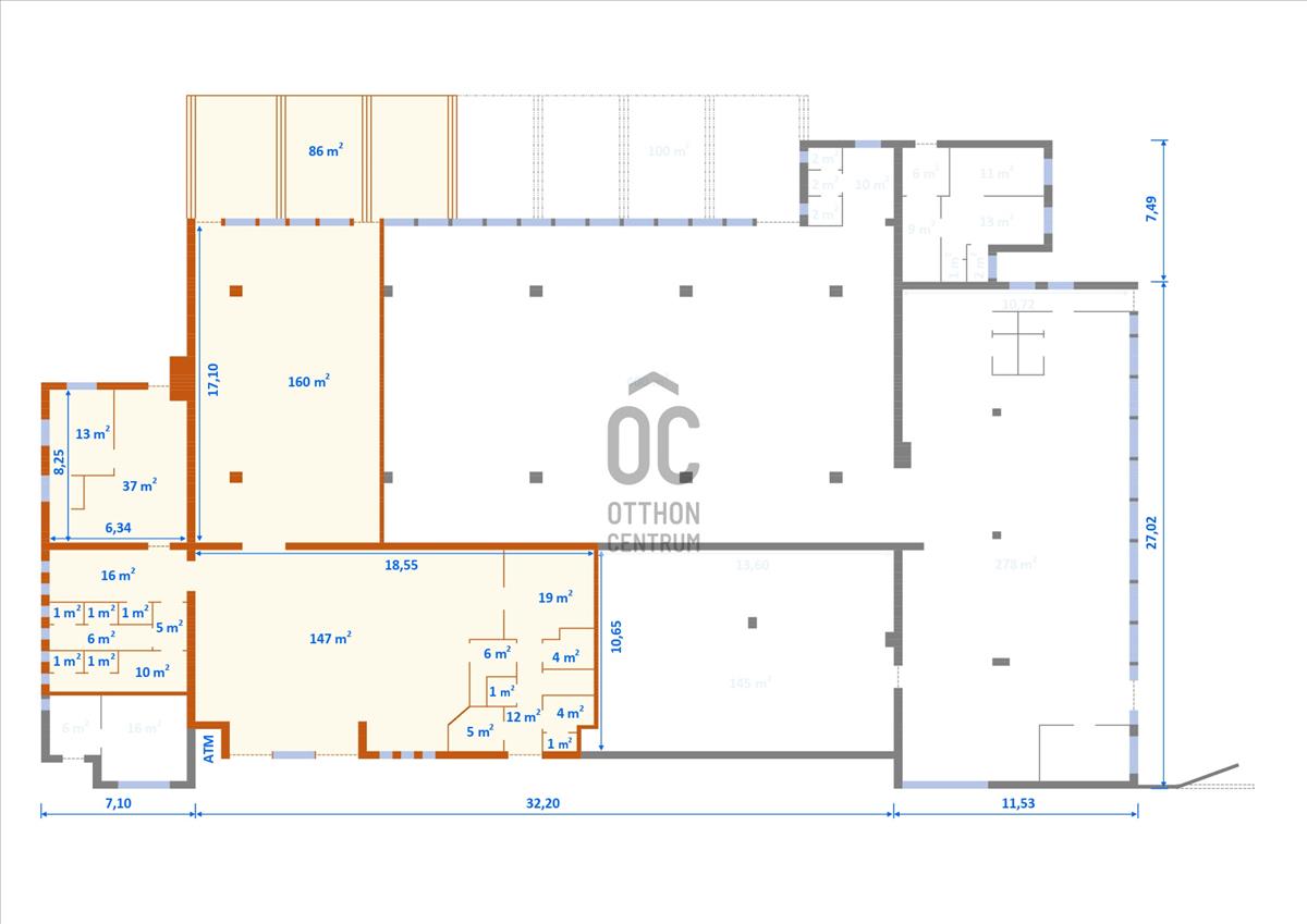 Az épület belterülete variálható válaszfalak áthelyezésével, kivételével, új válaszfalak beépítésével a bérlő igényeire szabható.